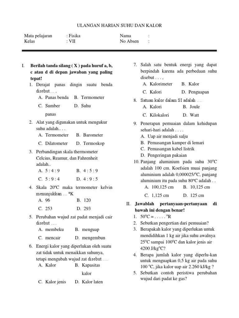 Latihan Soal Suhu Kalor Dan Pemuaian Smp : Doc Soal Hots Suhu Dan Kalor Docx Marlina Lina Academia Edu : Dibawah ini adalah alasan yang tepat sehingga .